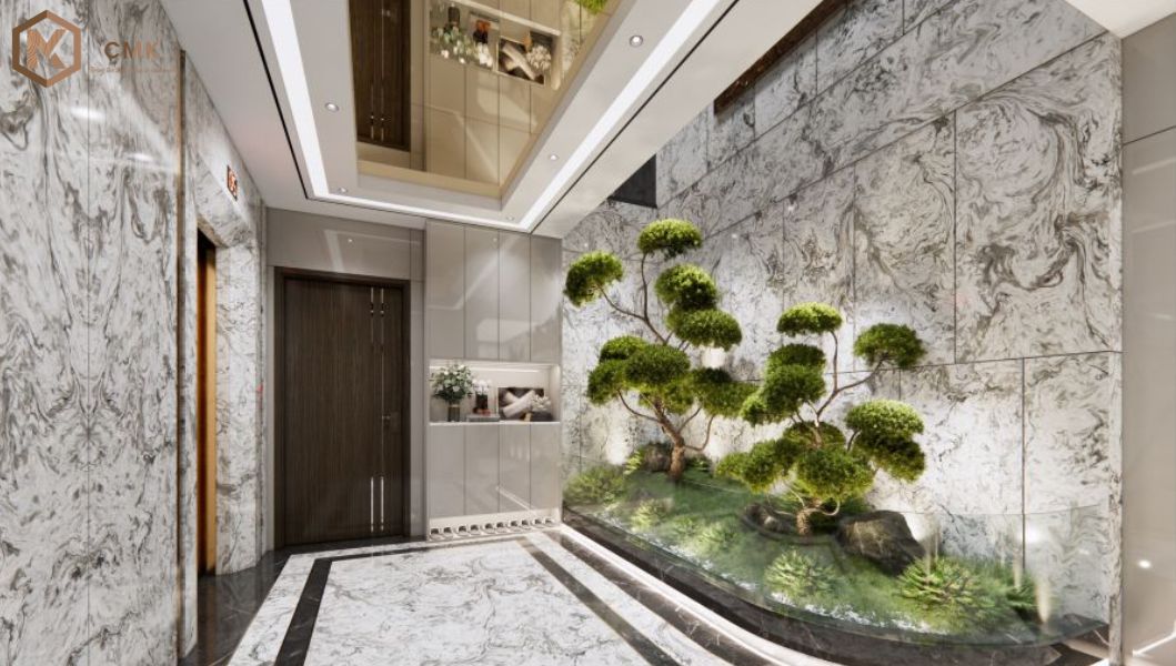 - Không gian phụ trợ: Tiểu cảnh xanh bên trong tạo sự cân bằng, gợi cảm giác thư giãn, gần gũi với thiên nhiên.