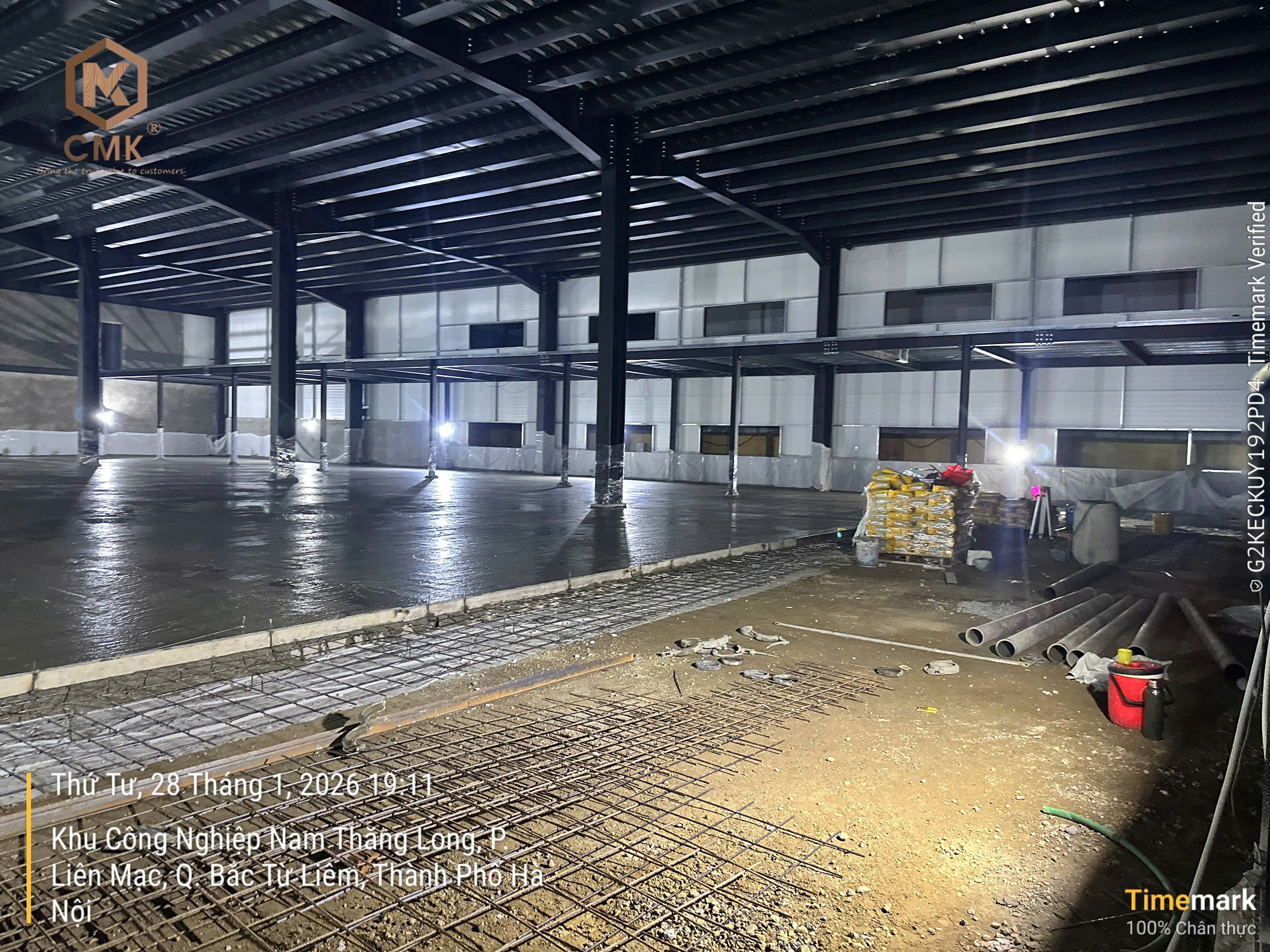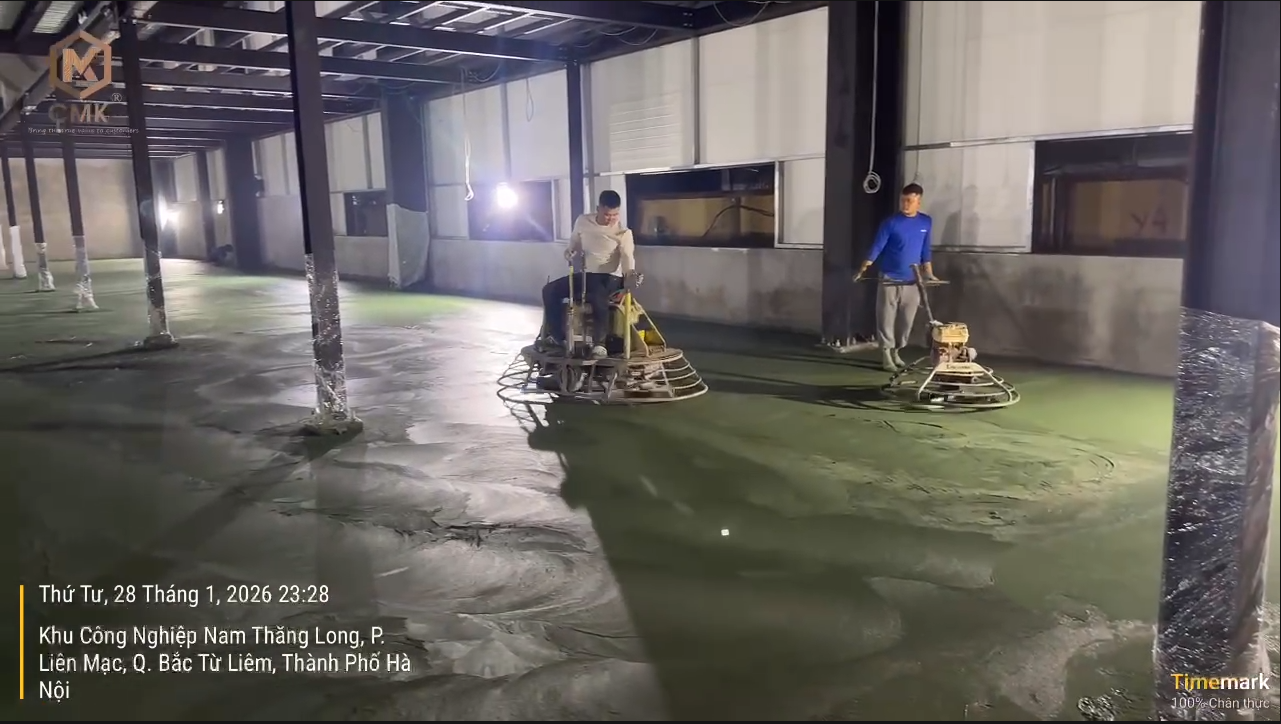 Hoạt động thi công đổ bê tông nền xuyên đêm không chỉ thể hiện quyết tâm bám sát tiến độ, mà còn là minh chứng rõ nét cho tinh thần đoàn kết, ý chí vượt khó và văn hóa làm việc trách nhiệm của CMK. Đây chính là những giá trị cốt lõi giúp CMK từng bước khẳng định uy tín, năng lực và hình ảnh chuyên nghiệp trong mắt Chủ đầu tư và đối tác.