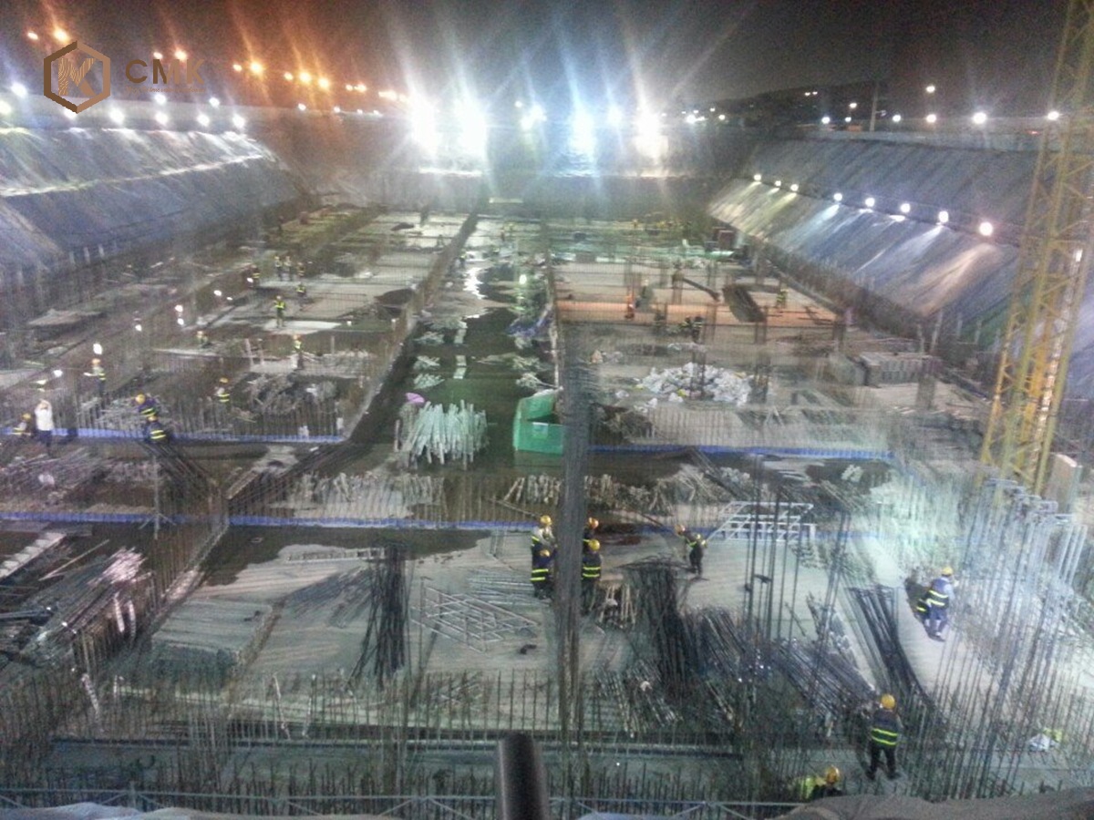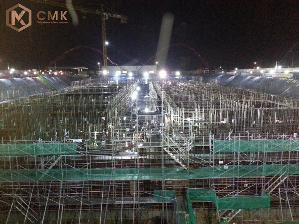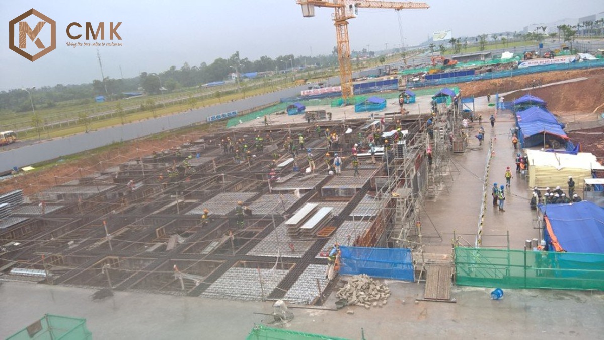 - Biện pháp thi công: Các kỹ sư và công nhân của CMK đã triển khai hệ thống cốp pha, giàn giáo, cốt thép dày đặc và sử dụng thiết bị bơm bê tông công suất lớn, thi công cả ban ngày lẫn ban đêm nhằm đảm bảo tiến độ.