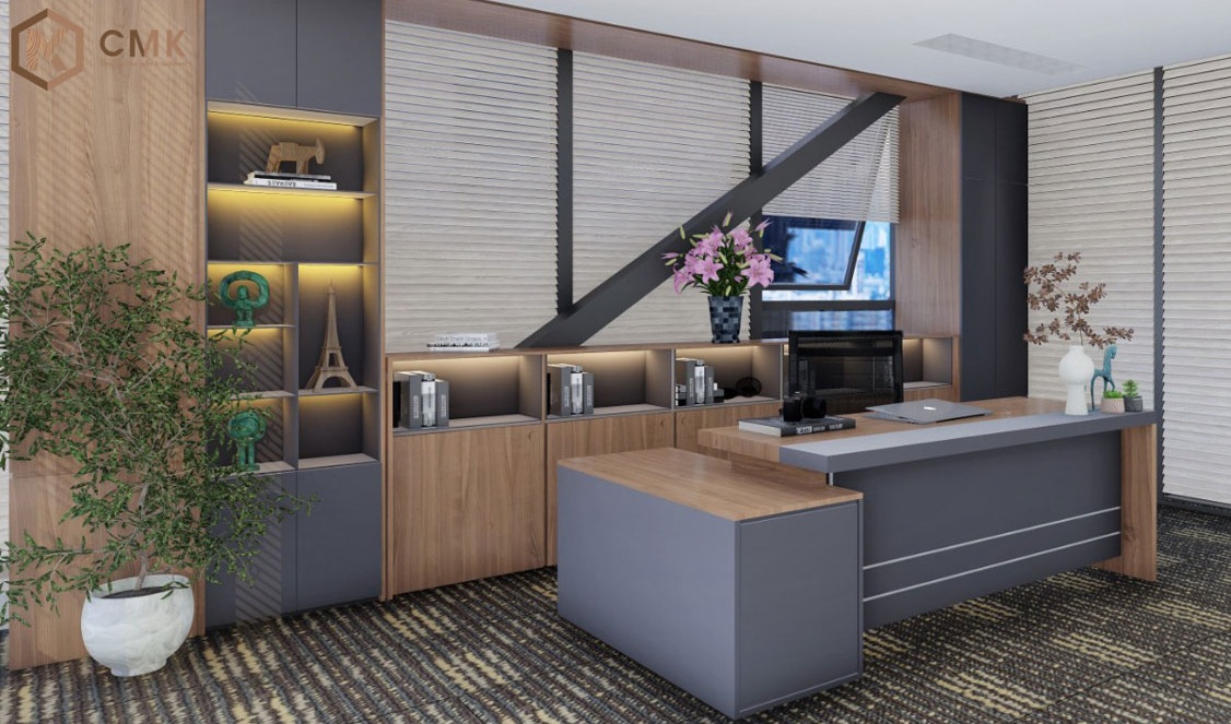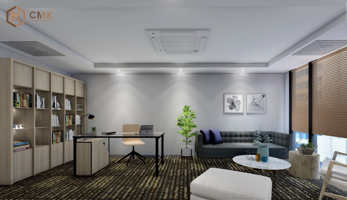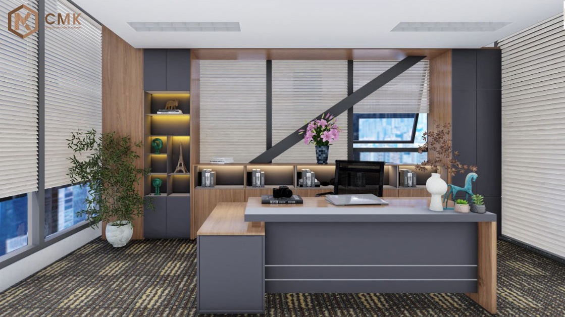 - Khu vực Phòng giám đốc & phòng họp sang trọng: Sử dụng nội thất tinh giản, hiện đại, nhấn mạnh sự chuyên nghiệp và đẳng cấp.