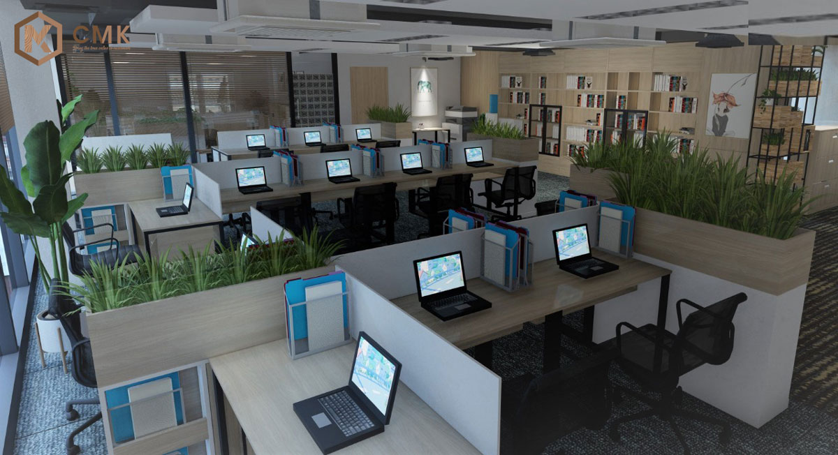 - Không gian làm việc mở: Bố trí nhiều cụm bàn làm việc hiện đại, tối ưu diện tích, thúc đẩy sự kết nối và hợp tác giữa nhân viên.