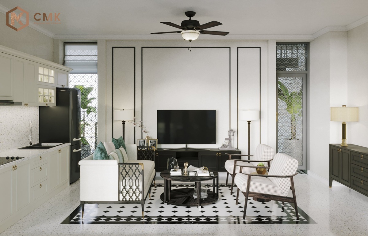 Phong cách Indochina – giao thoa giữa kiến trúc Pháp cổ và tinh thần Á Đông – là linh hồn của dự án. CMK đã khéo léo dung hòa hai yếu tố tưởng chừng đối lập: Sự sang trọng cổ điển và tính tối giản hiện đại, để tạo nên những không gian vừa gần gũi, vừa đẳng cấp.