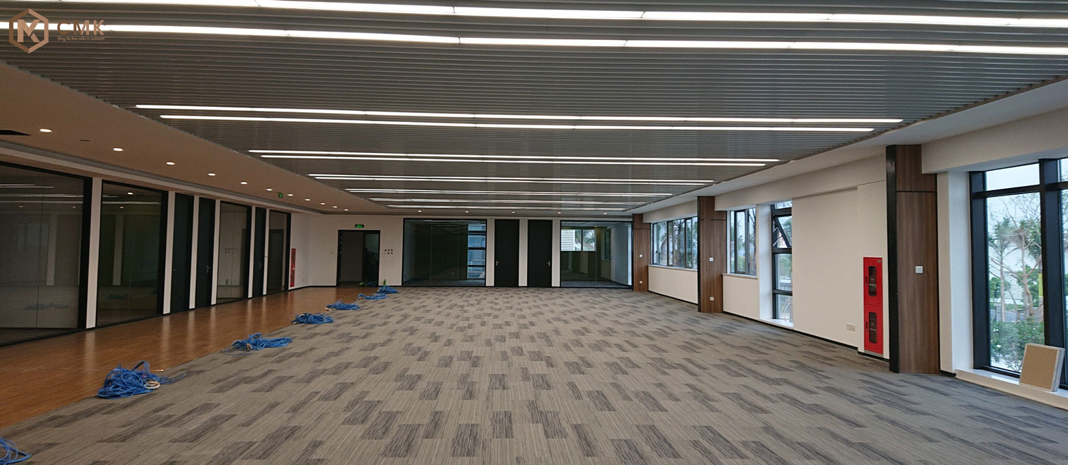 - Hệ thống chiếu sáng đồng bộ: Ứng dụng trần thả hiện đại với dải đèn LED, mang lại ánh sáng đều, tiết kiệm năng lượng.