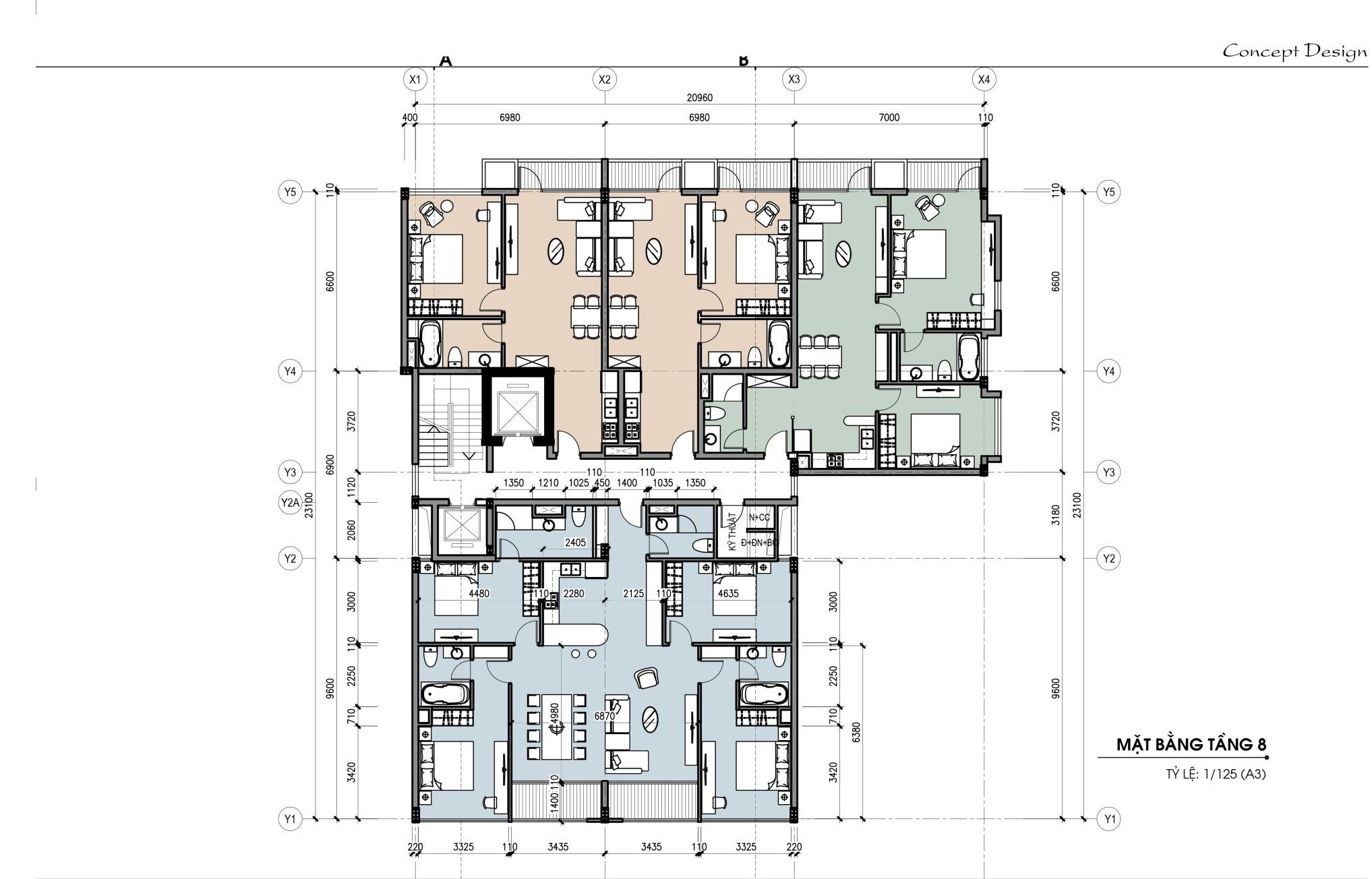 - Căn hộ cho thuê cao cấp: Các tầng được bố trí hợp lý với nhiều loại căn hộ diện tích khác nhau, đáp ứng nhu cầu lưu trú đa dạng từ khách cá nhân đến hộ gia đình.